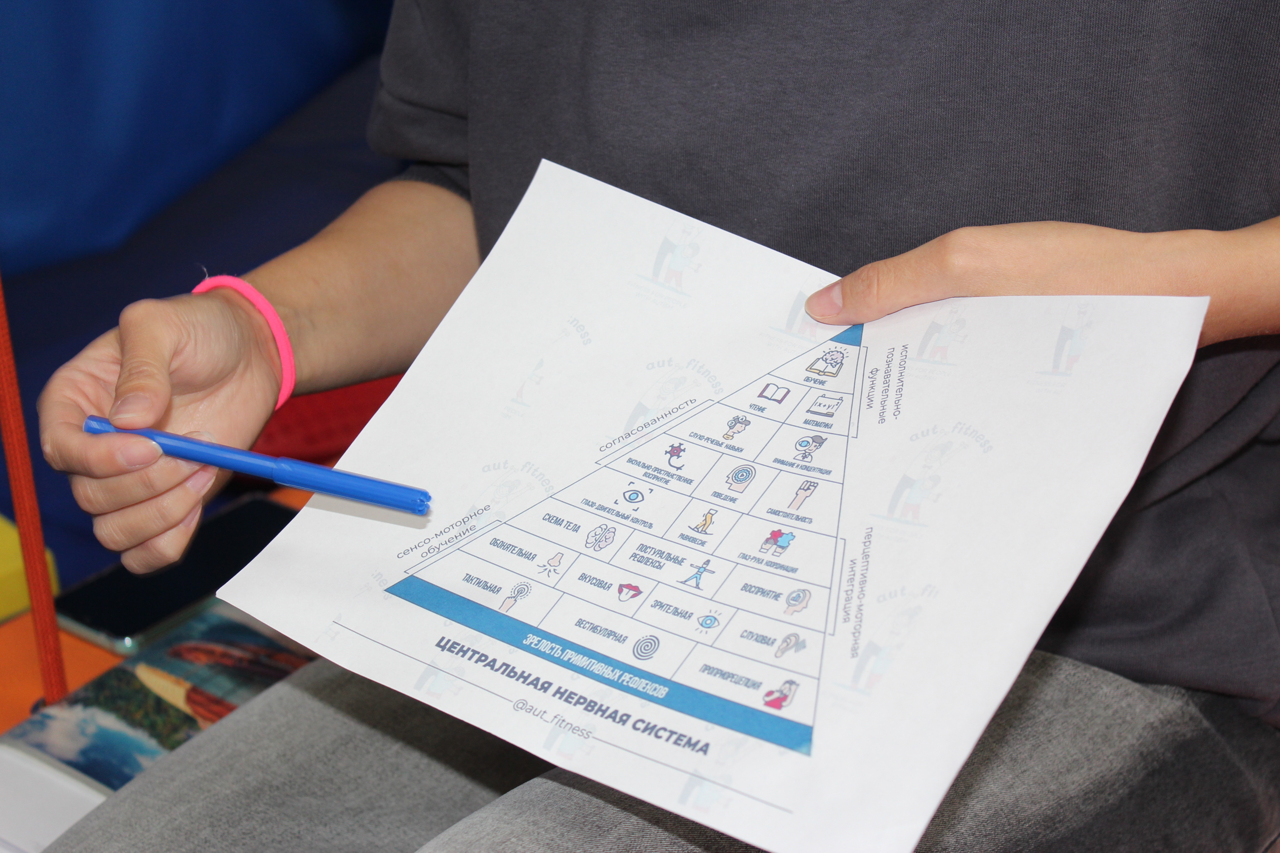 «Применяя эти знания на занятиях, тренеры-преподаватели по АФК смогут выходить на более высокий уровень развития ловкости и координации — насыщение тактильных, вестибулярных систем и т.п. При этом у иных специалистов появится возможность поработать с ребенком в другом направлении», — комментирует педагог-психолог, ведущий специалист психолого-педагогической реабилитации центра «Родник» Варяев Данил.