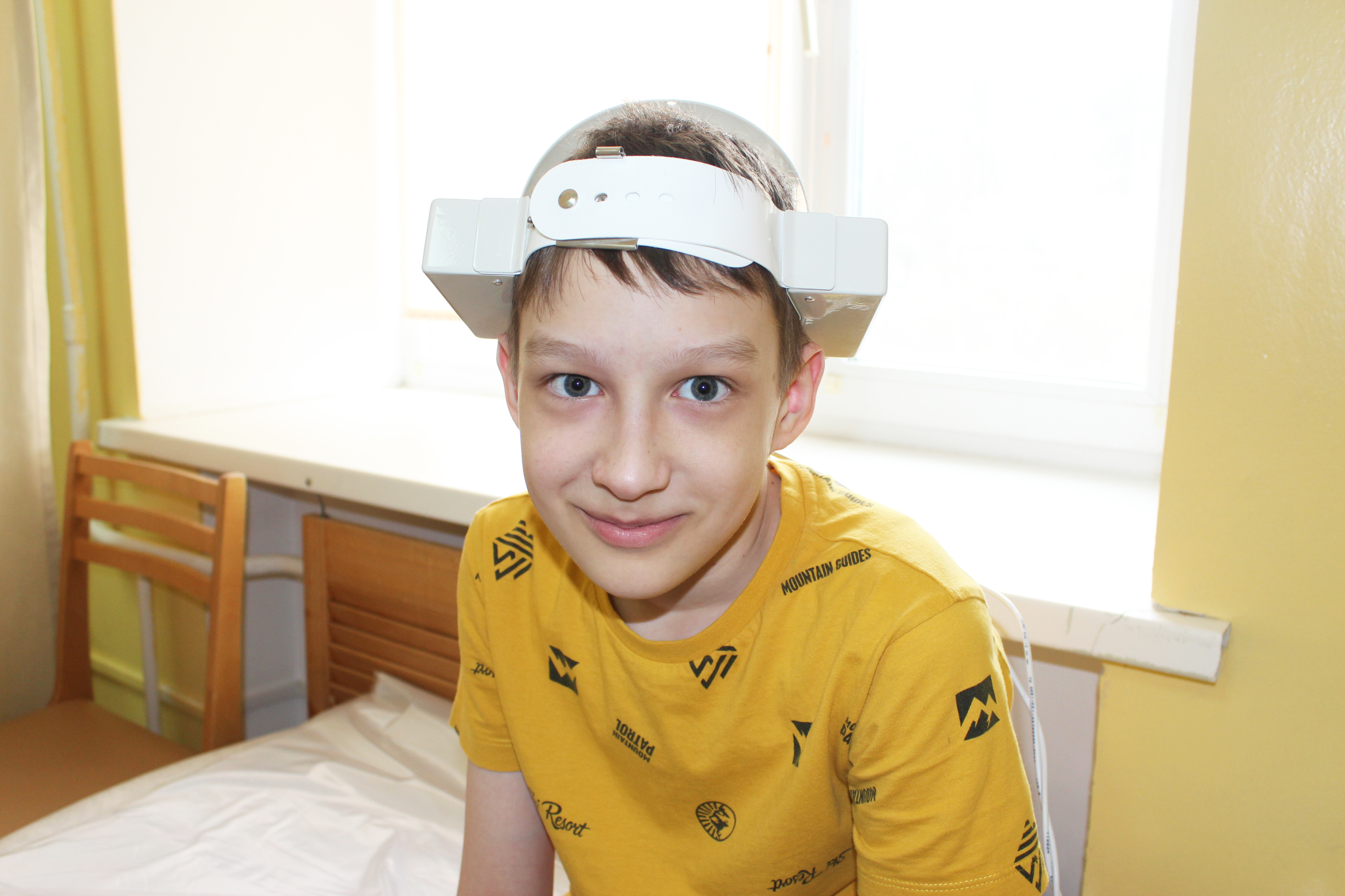 В физиотделении реабилитационного центра «Родник» часто можно увидеть детей в стальных шапочках. Это процедура транскраниальной магнитотерапии с помощью аппарата «АМО-АТОС». Устройство-приставка «Оголовье» воздействует на мозг бегущим магнитным полем.