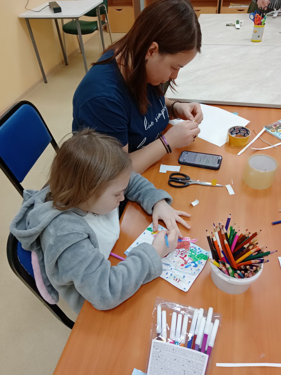 Чтобы 3D-открытка засветилась по-новогоднему, ребята дополняют её блестками. А вы уже написали письмо Деду Морозу?