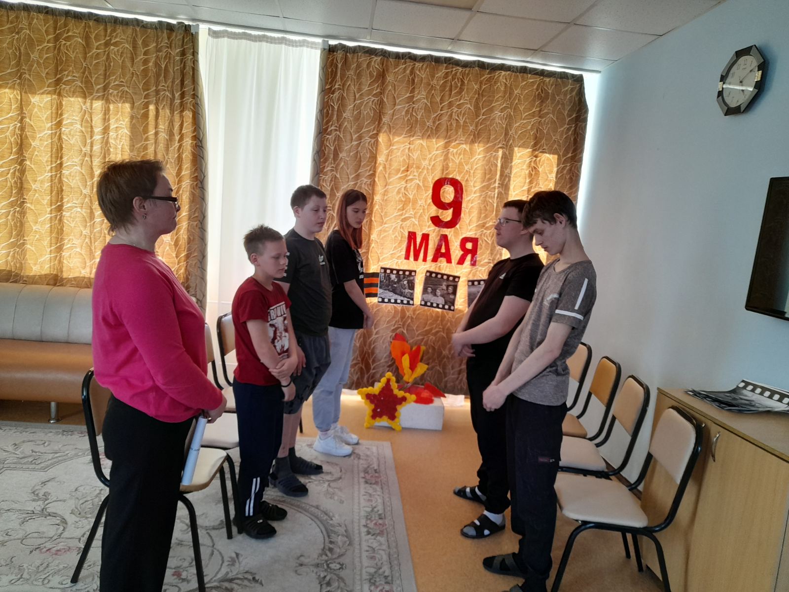 Дети «Родника» активно включились в подготовку к празднику. Ребята приняли участие в мероприятии «Детство, опаленное войной». Прониклись подвигами ветеранов, детей-героев, приближающих победу, и почтили память погибших минутой молчания.