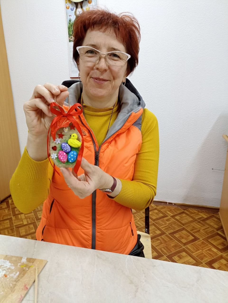 Социальный педагог Жанна Владимировна Клинг представила свои варианты пасхальной композиции и научила, как оформить заготовку, используя разнообразные декоративные элементы. В результате у сопровождающих получилась неповторимая и наполненная положительными эмоциями поделка, которую можно подарить близким или использовать для праздничного украшения стола и всего дома. Занятие было настолько увлекательно, что время мастер-класса пролетело незаметно.