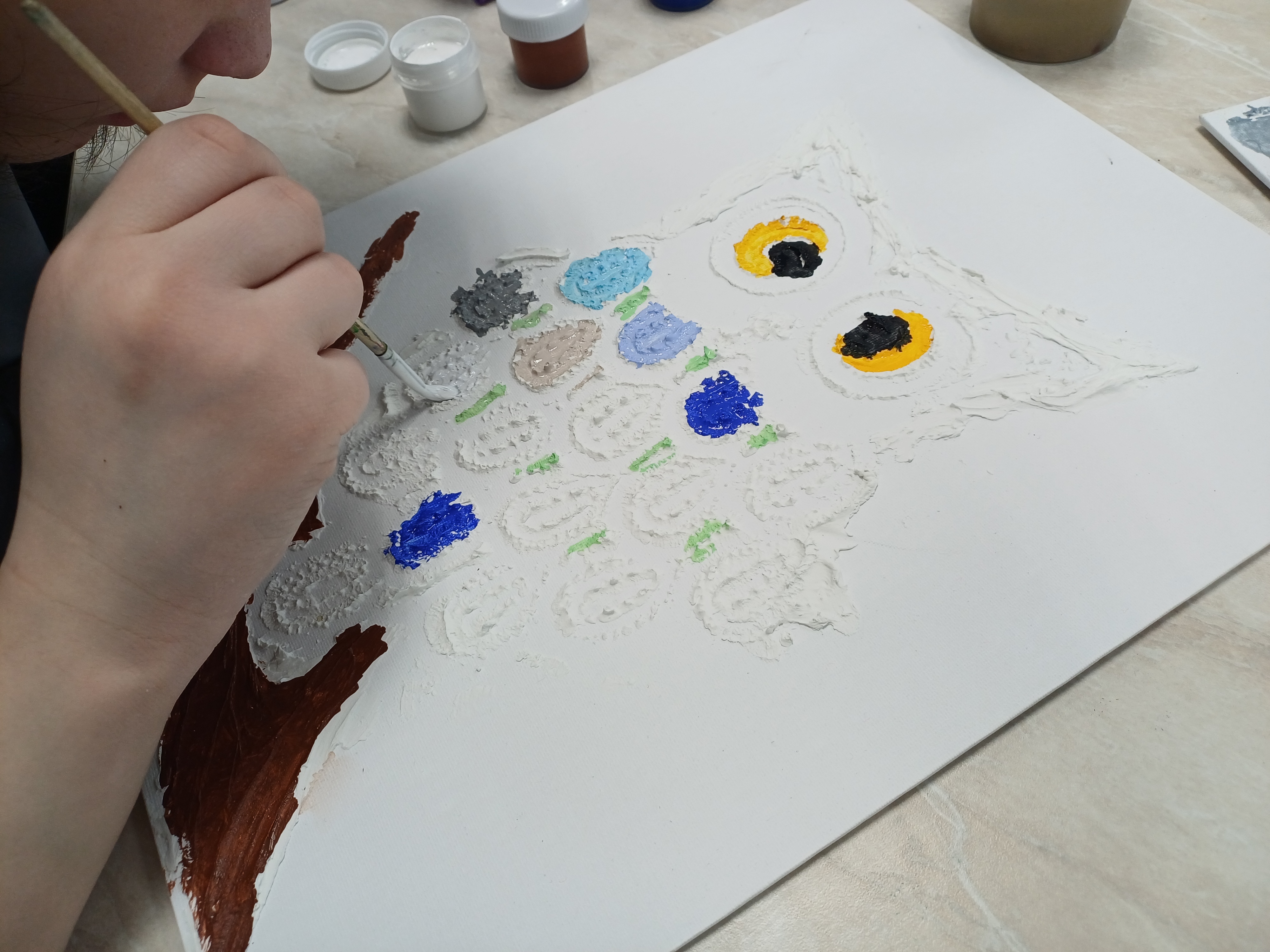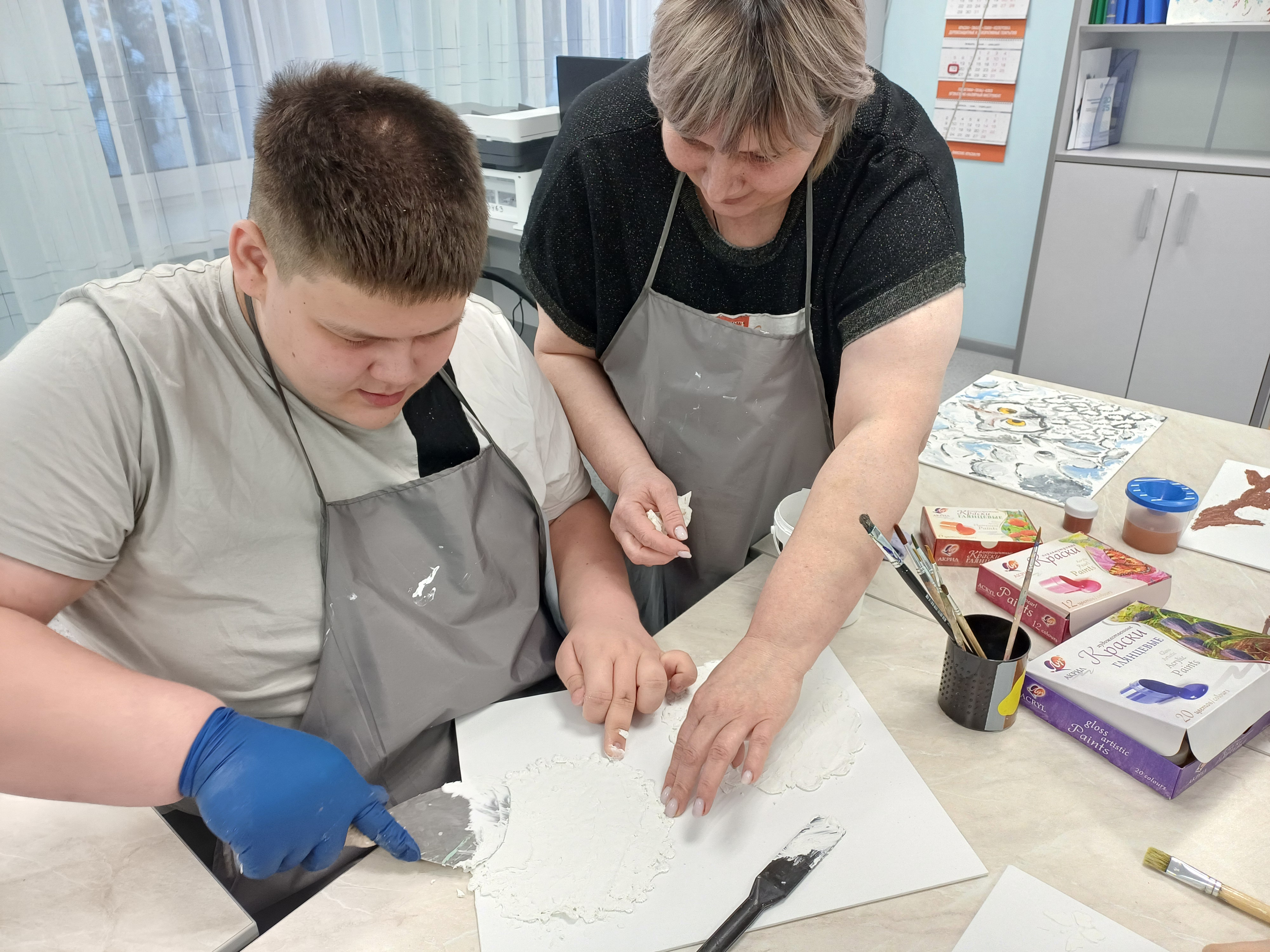 «Такая техника сейчас очень распространена, но для детей она в новинку. С объемом они еще не работали, — поясняет ведущий специалист по социокультурной реабилитации центра «Родник» Волосач Ольга Ивановна. — Апробировали текстурное рисование на педагогах и подростках, которые проходят реабилитацию в центре прямо сейчас. Теперь предстоит адаптация задумки для детей с аутизмом и другими ментальными нарушениями».