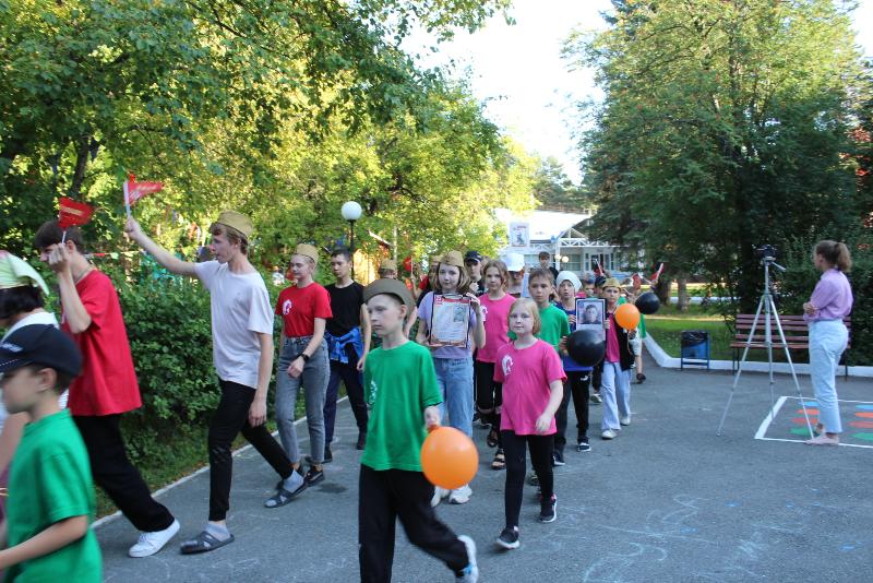 На летней смене «Родника» прошел «Бессмертный полк». Более 100 детей инклюзивного лагеря приняли участие в памятном шествии. К ним присоединились семьи, которые проходят реабилитацию в центре.