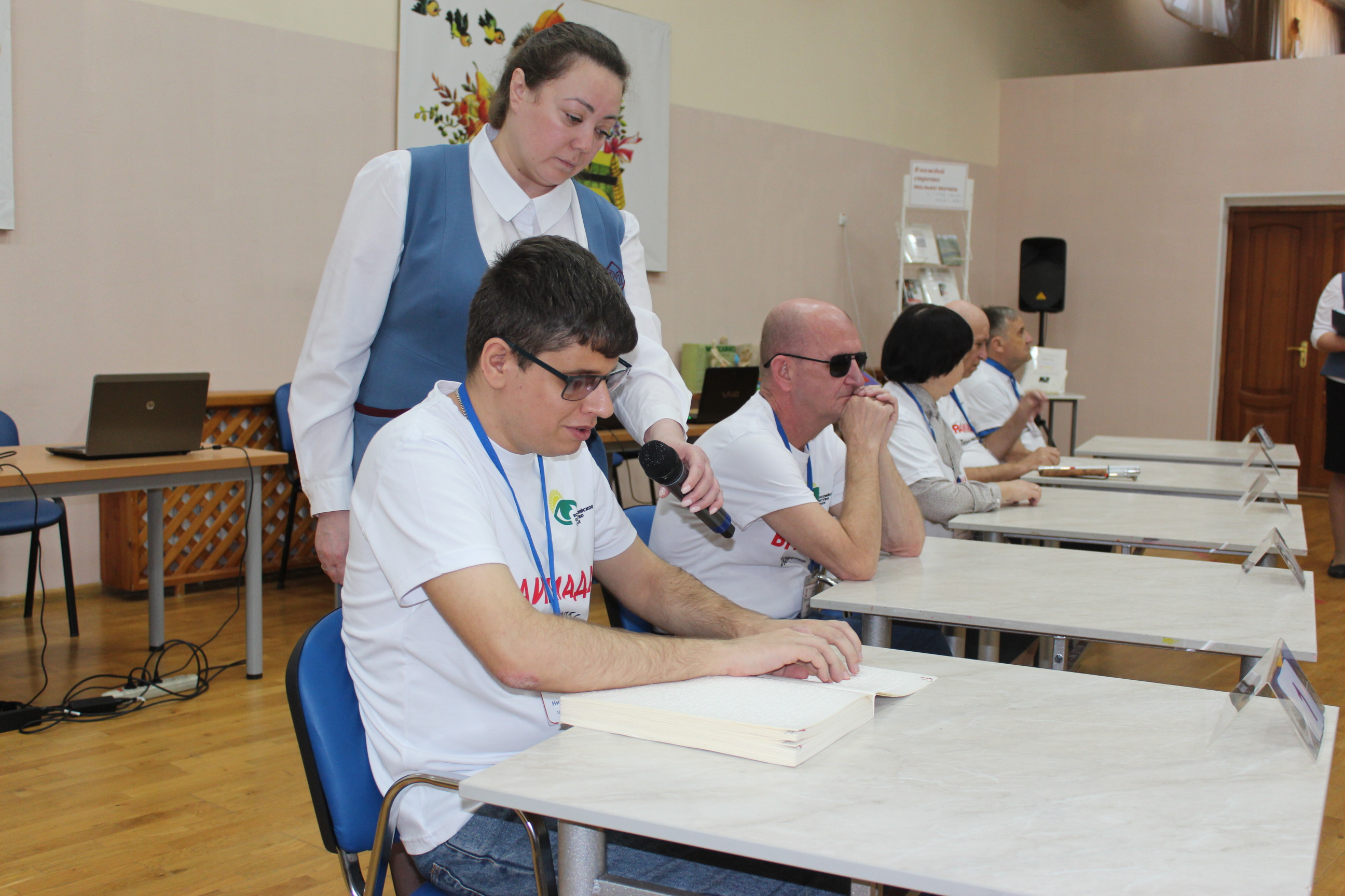 Инвалиды по зрению состязаются в чтении, письме с помощью грифеля, прибора и брайлевского дисплея. Итоги подведут в командном зачёте.