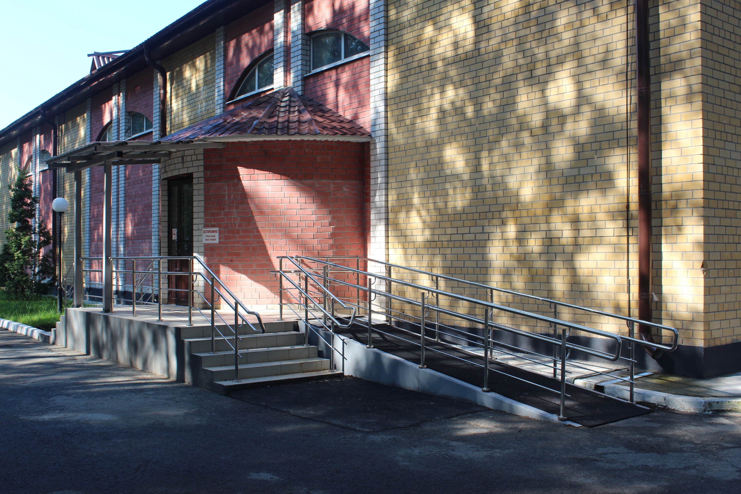 Обновление прошло во втором корпусе учреждения. Стационарные пандусы обустроены в соответствии с законодательными нормами и стандартами: Федеральным законом №181-ФЗ "О социальной защите инвалидов в Российской Федерации", ГОСТом Р 51261-2022 и СП 59.13330.2020.