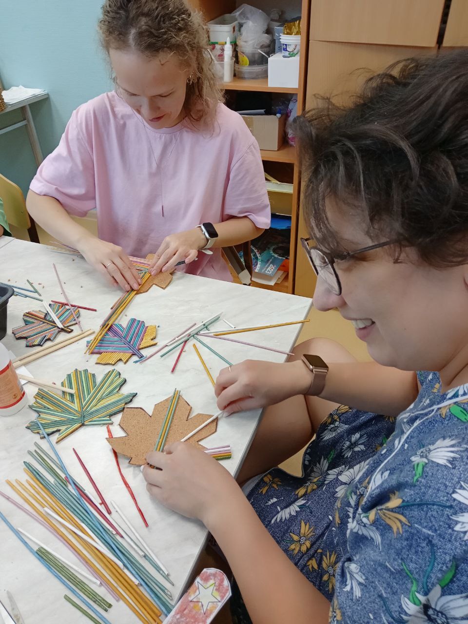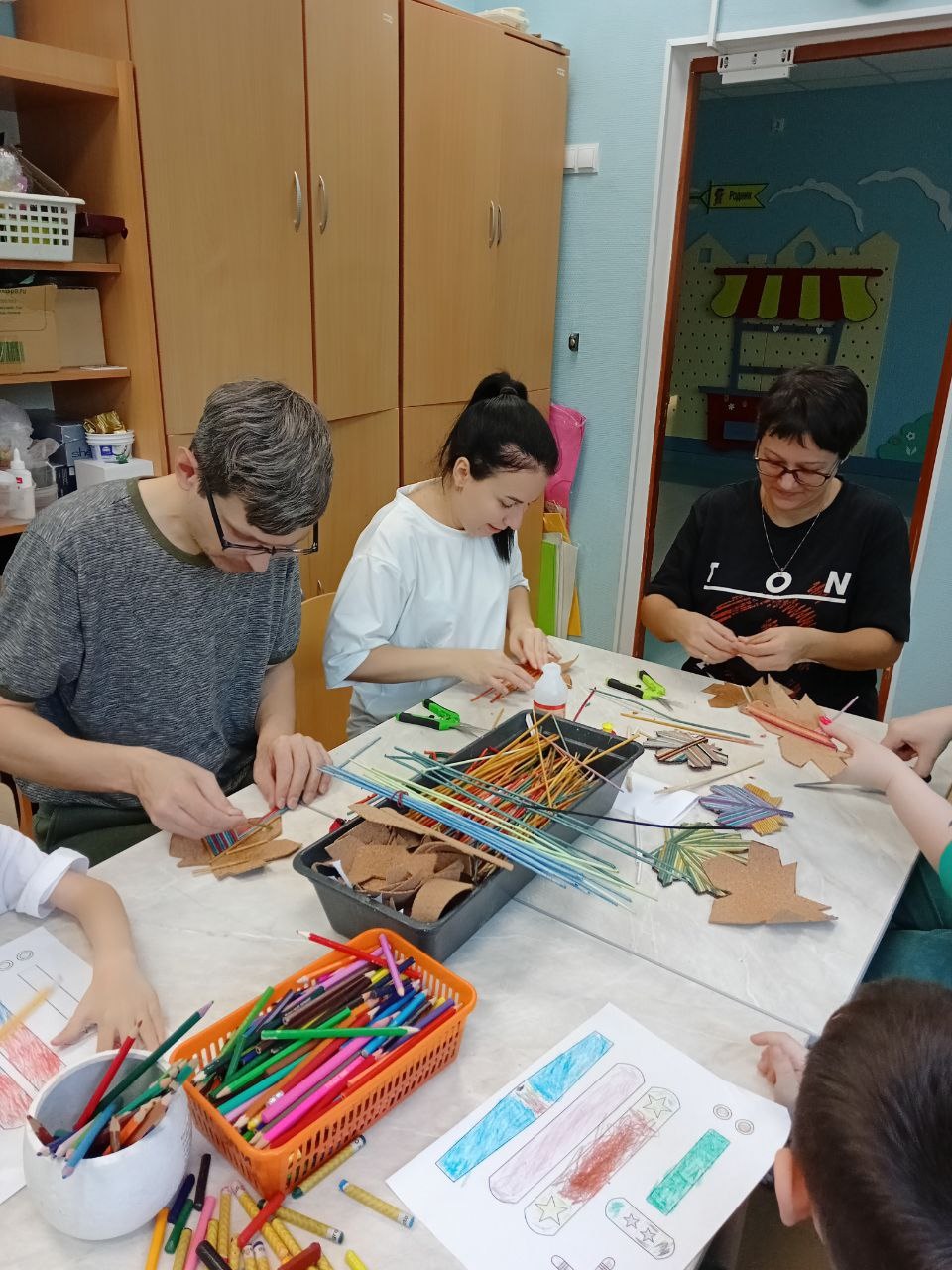 Социальный педагог Ольга Ивановна Волосач занимается плетением из бумажной лозы. Своей страстью зажигает детей и родителей, которые приехали в «Родник» на реабилитацию.