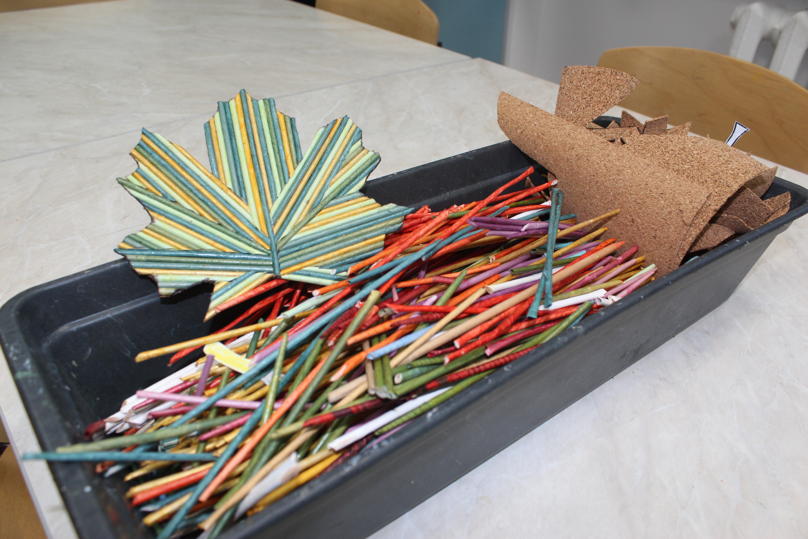 После плетения остаются обрезки бумажных трубочек. Ольга Ивановна придумала использовать их повторно. Из таких остатков получаются замечательные мелочи для кухни.