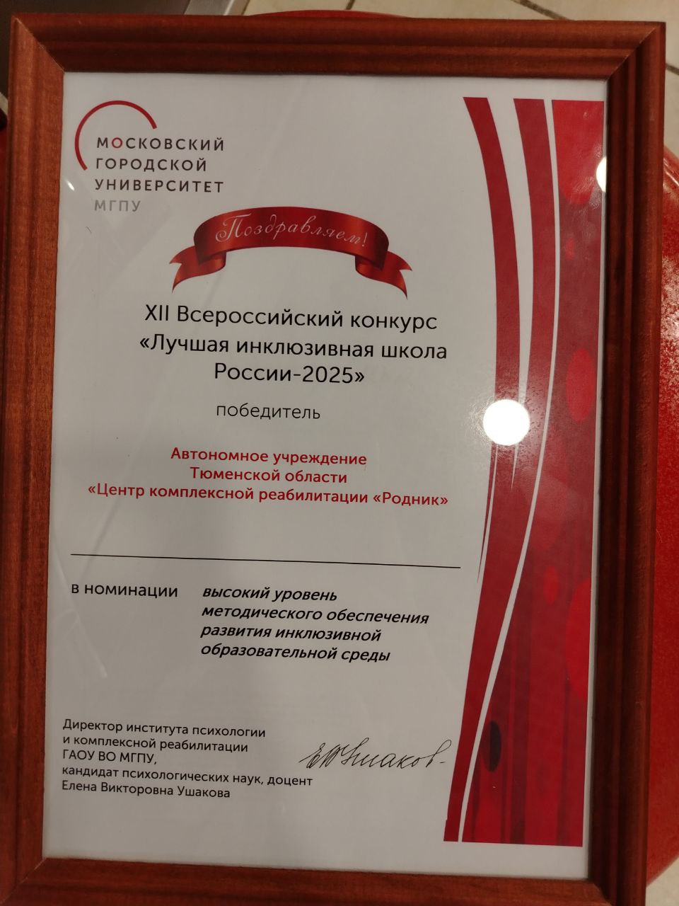 Призер в специальной номинации «Высокий уровень методического обеспечения развития инклюзивной образовательной среды»
